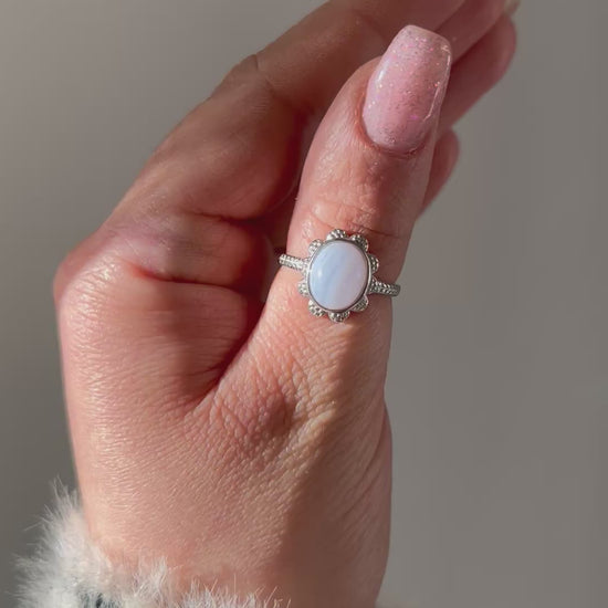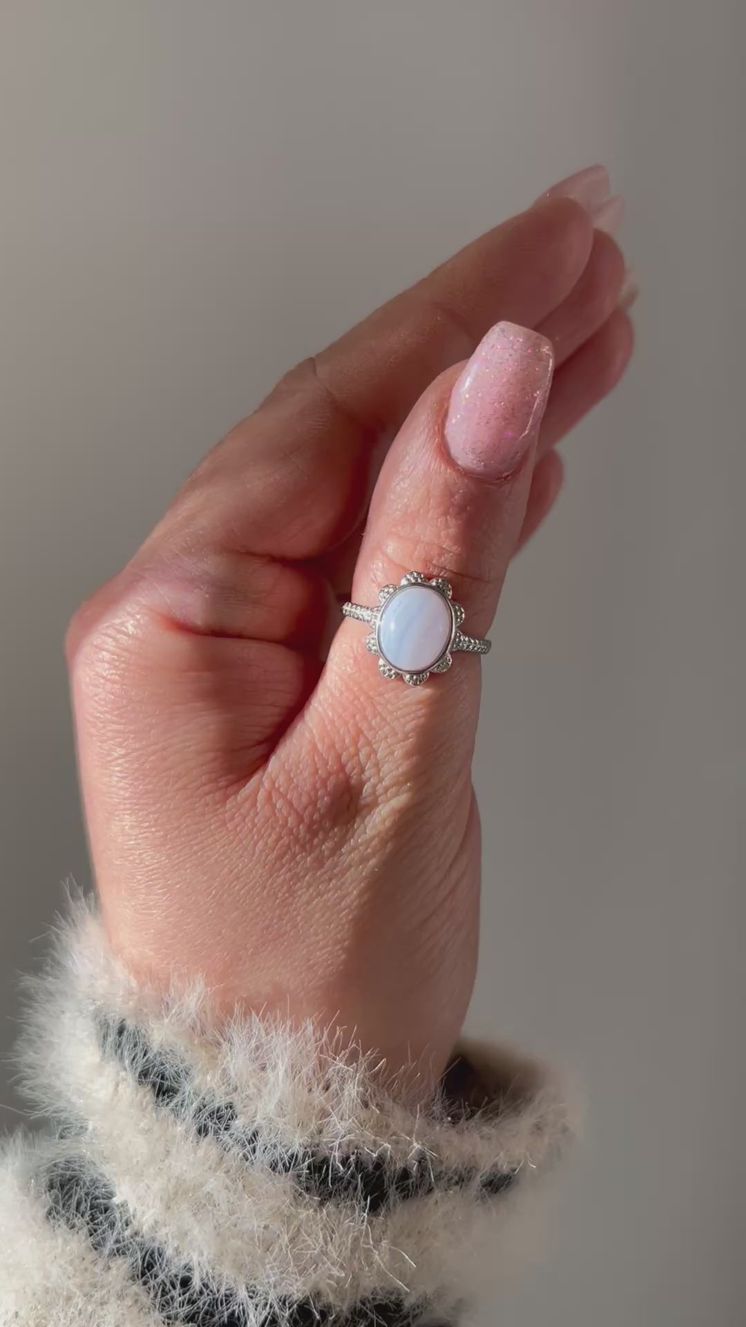 Anello con Agata Blue Lace, in argento 925, taglia regolabile🩵