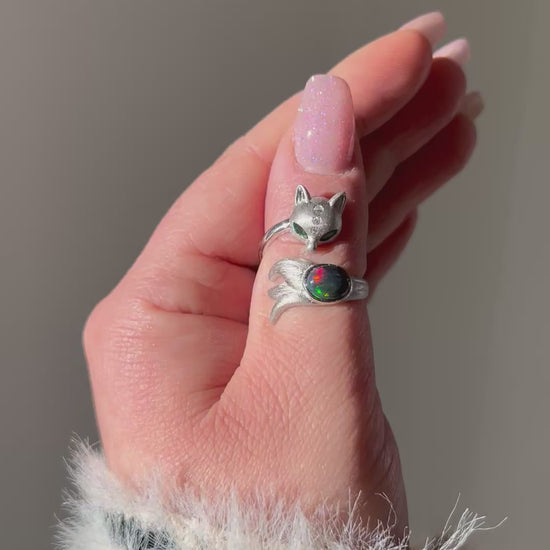 Anello Volpe con Opale Nero🖤🦊(argento 925)