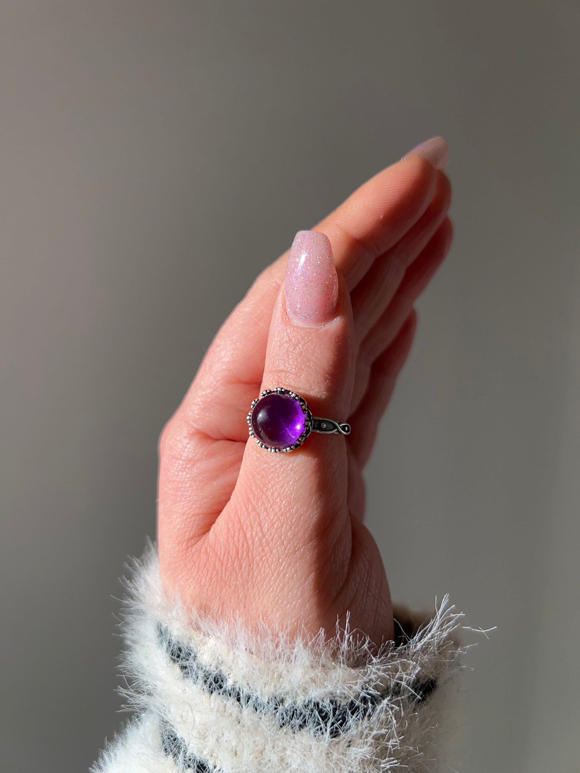 Anello in argento 925, in taglia regolabile, con Ametista