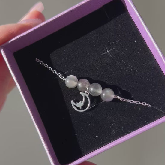 Bracciale regolabile, realizzato a mano in acciaio inossidabile con Pietra di Luna Nera naturale