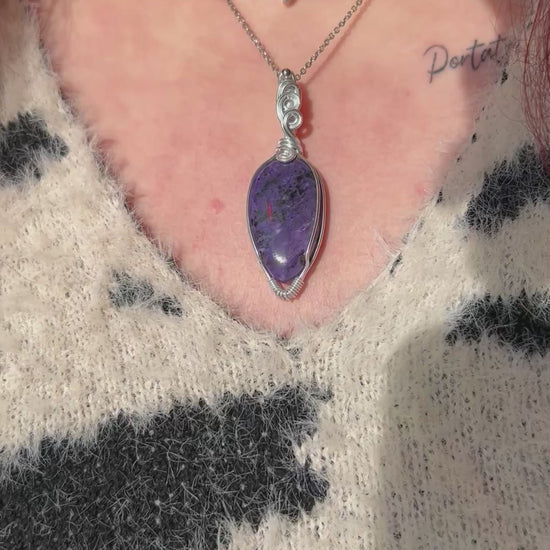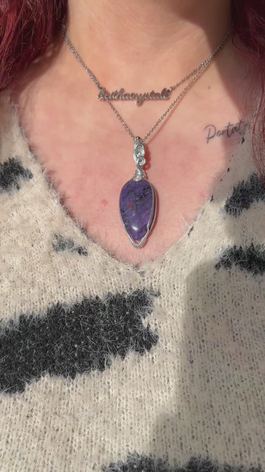 Collana realizzata a mano con Charoite, in alluminio inossidabile e anallergico
