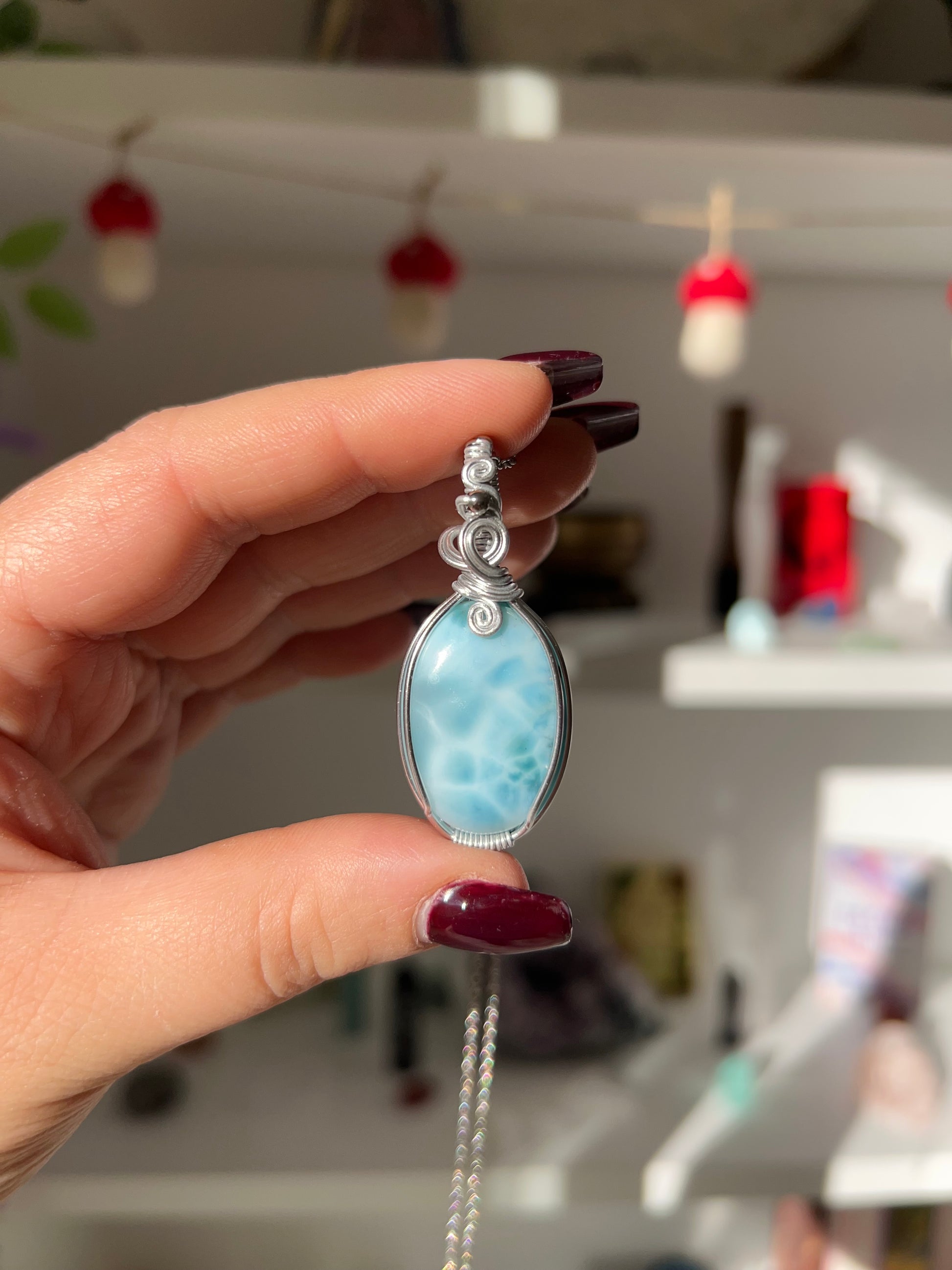 Collana realizzata a mano con Larimar, in alluminio ipoallergenico e inossidabile