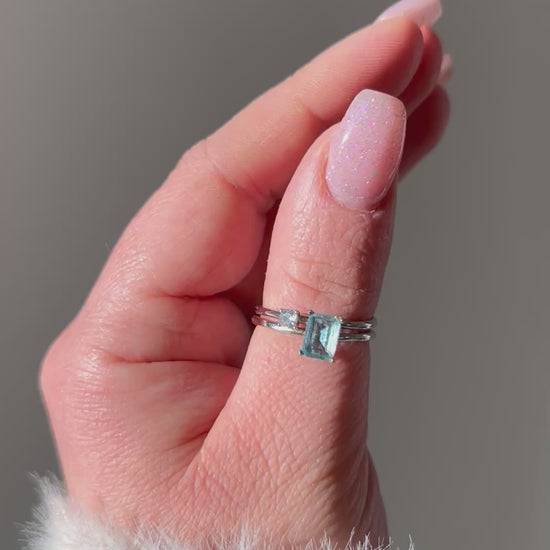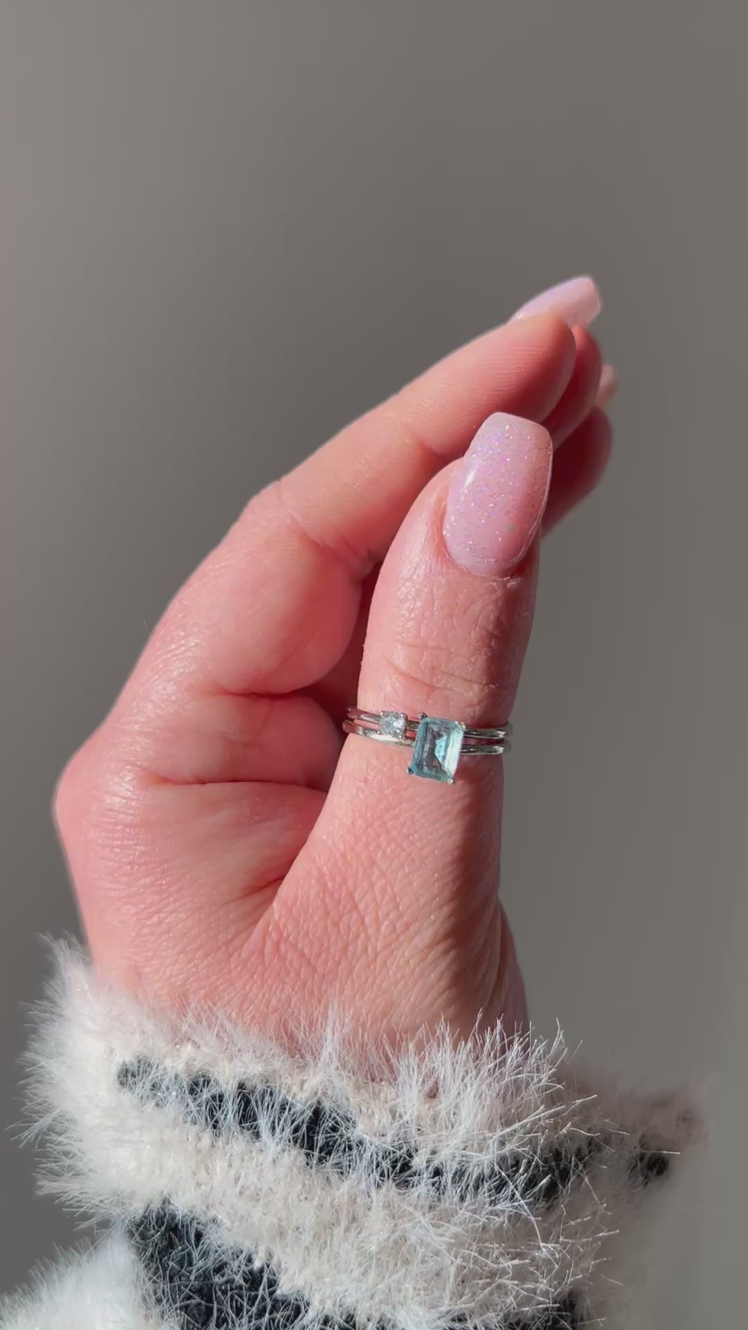 Anello con Acquamarina naturale, in argento 925, taglia regolabile