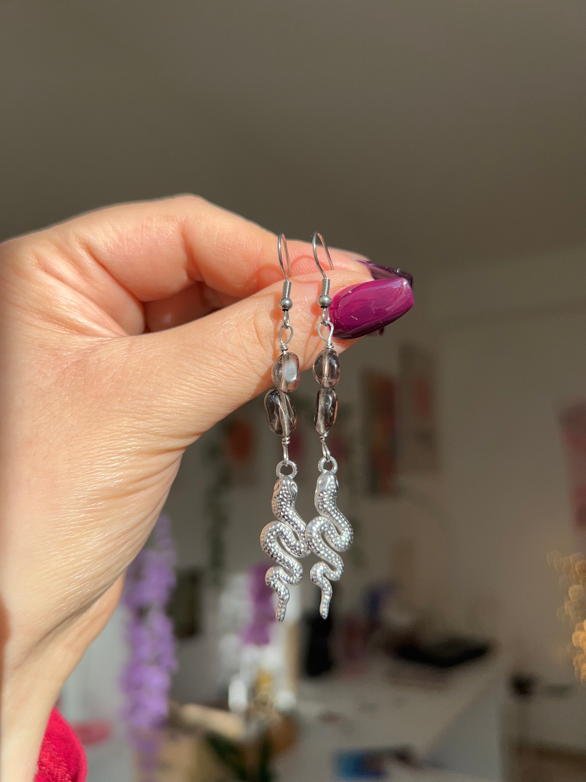 Orecchini realizzati a mano con Quarzo Fumé, in acciaio inox